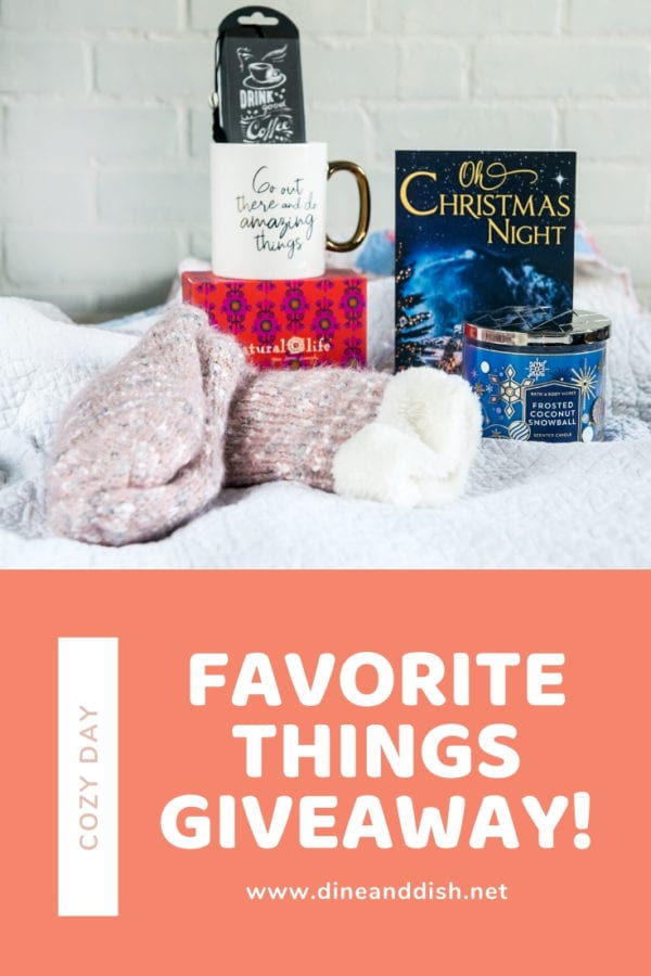 Are you ready to hear about some of my favorite things? Well, one of my favorite ways to spend a winter day is cozied up with a good book, warm socks and a mug of coffee. That’s why I decided to give away some of my favorite things for a cozy day! With this giveaway today you have the opportunity to enter to win the following cozy day in items: