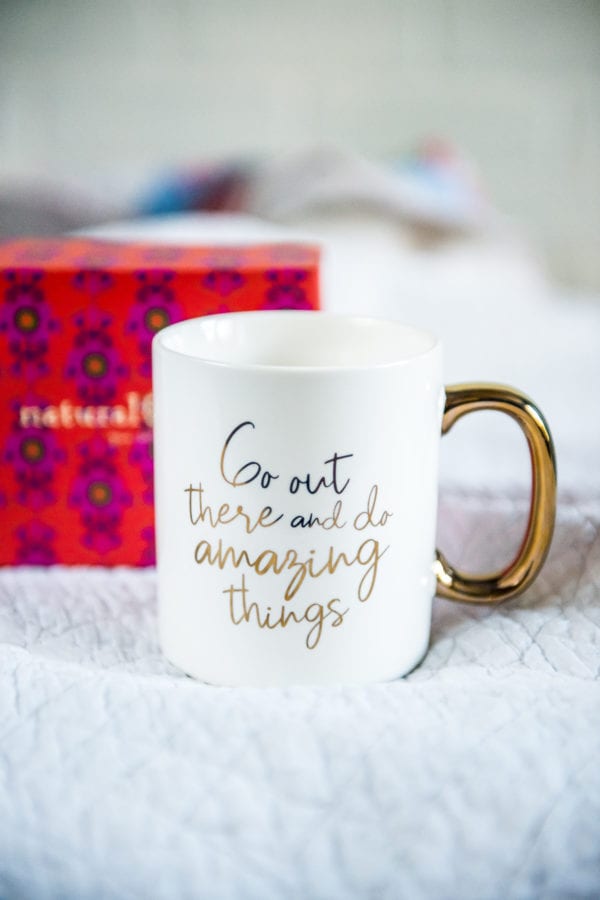 I love a cute coffee mug and the folks at Natural Life have some of my absolute favorites! In fact if I had a Natural Life store near me, I probably would have filled my giveaway with ALL the things from there. I love everything in their store but I especially like their line of encouraging mugs, like the one I’m giving away today. “Go out there and do amazing things!”. Well, yes I will but after I’ve had my cozy day in, thank you very much.