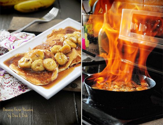 Things got pretty hot in our kitchen during our pancake creation. Make sure to head over to Rachel’s to see the full details including the recipe for Bananas Foster Pancakes!