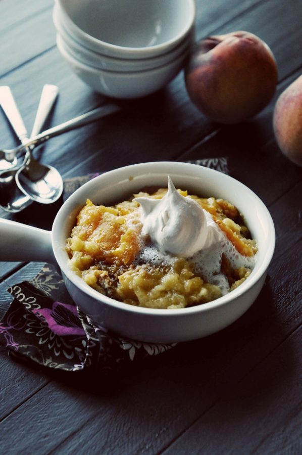This super easy 3 ingredient recipe is almost like peach cobbler and goes very well