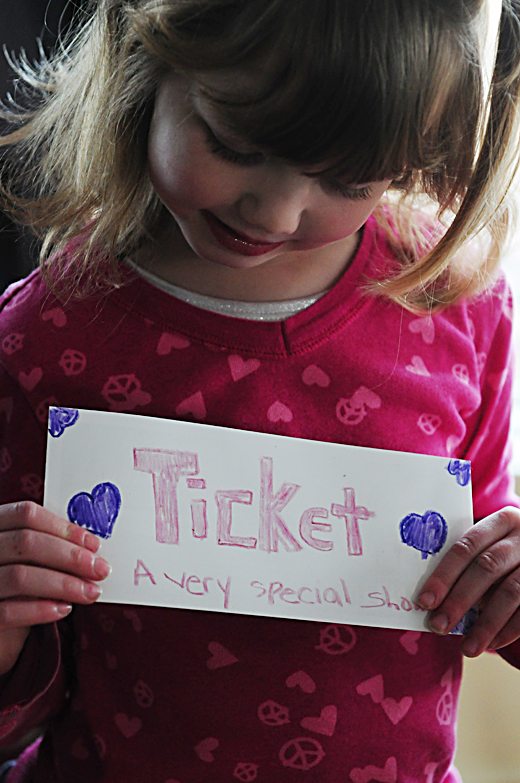 When you have three daughters, like I do, you get a pretty neat opportunity to see creative genius at work…every.single.day. Not a day goes by that I don’t have some little person coming to me and asking if I want to see their newest play, gymnastics routine, rock concert, modeling session, etc. Sometimes, when I’m extra lucky, I even get a big ticket to a “very special show”.
