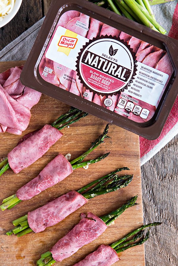 I chose to wrap the asparagus in the Slow Roasted Roast Beef, but any of the varieties of Oscar Mayer Selects Natural products would work just as well. In addition to the roast beef, you can choose from Slow Roasted Turkey, Applewood Smoked Turkey, Rotisserie Seasoned Chicken and Applewood Smoked Ham. Whatever flavor combination you love best works with this recipe.