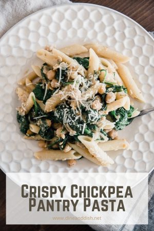 Crispy Chickpea Pantry Pasta with Spinach and parmesan cheese