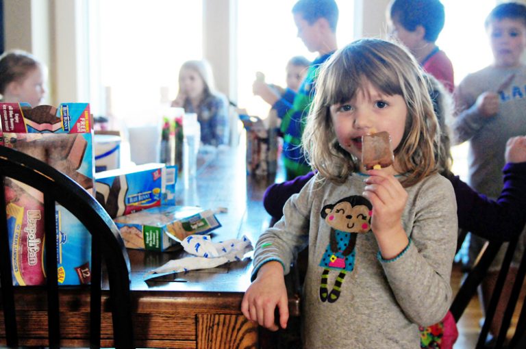 We ended up having about 30 guests that afternoon, all enjoying the different options and flavors Blue Bunny has to offer. Ice Cream Sandwiches, Fudge Bars, Ice Cream Cones… you name it, we had it and it was gobbled up and enjoyed by kids and adults alike. And you know what? Not one person said a thing about my floors!