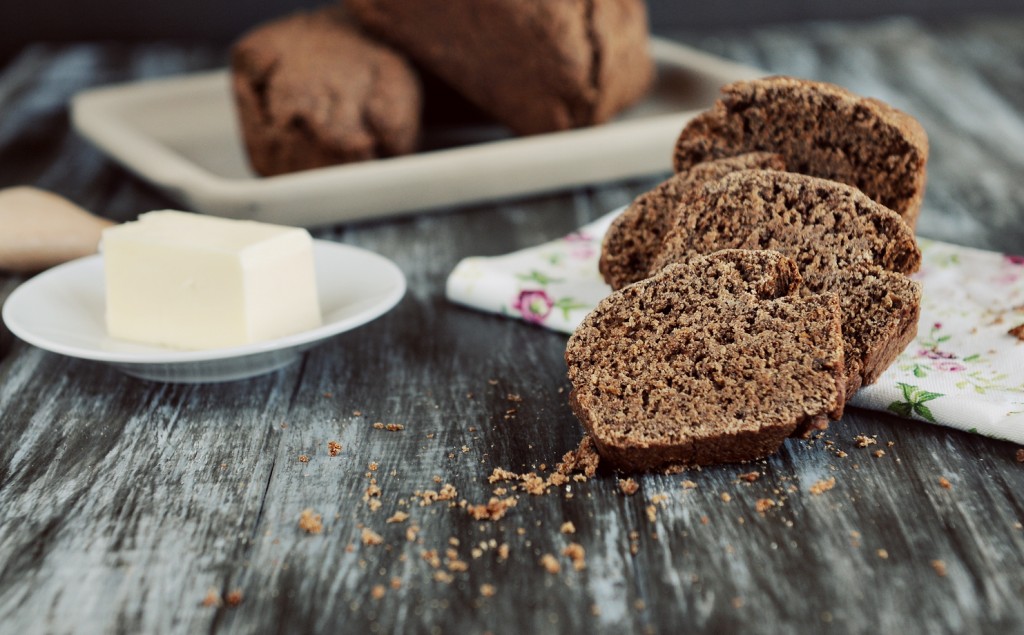 This bread reminds me some of the dark bread you get from the Cheesecake Factory. It’s definitley not your standard bread recipe. Molasses and coffee along with the brown sugar and a touch of cocoa give the bread a depth of flavor you won’t find with any of the products on the store shelves. Rich, delicious and hearty, this is a bread recipe you’ll want to have handy, especially when the cooler fall weather rolls around (and it will roll around, I promise!). I can imagine this bread pairing beautifully with a steaming bowl of beef stew.