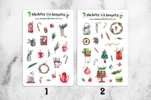 I have to be really careful to limit my visits to the Stickers for Keepers Etsy shop. Every single time I’m there I load my cart way up and blow my budget. Not that the products are expensive…they have sales all the time and their prices to begin with our very reasonable. But, these whimsical, watercolor designs are so hard to resist! Shop owner, Ana, runs her shop from Scotland and is always introducing creative new products. I especially love her holiday stickers.
