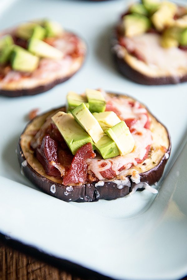 Pizza is one of my favorites. Love that I can eat this eggplant version and NEVER feel bad about it. 🙂