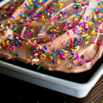 So, when I made our favorite chocolate sheet cake recipe this weekend, I actually took pictures! I didn’t do any fancy set up, but the sprinkles made me happy and I just needed to capture that and share it with you. I have a feeling I’m not the only one baking a ton right now. If you are in need of a great chocolate cake recipe, I highly recommend this chocolate sheet cake recipe with fluffy chocolate frosting. It’s an easy way to sprinkle a little happiness in your life. I don’t know about you, but I know I’m seeking happiness in every nook and cranny I can find. Enjoy!