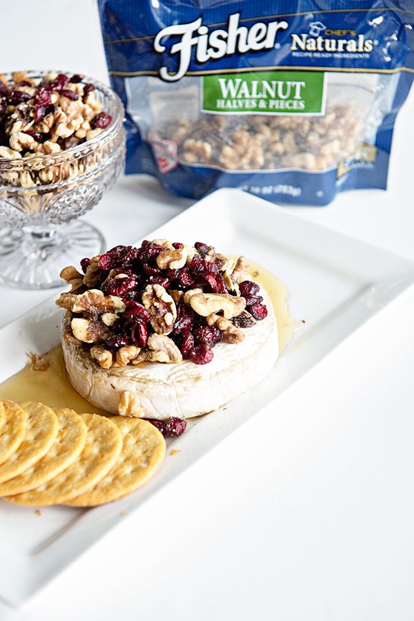 Topping Baked Brie with honey, toasted Fisher’s Nuts walnuts and cranberries is the most simple, yet flavorful appetizer. It’s festive enough for all the holiday parties your attending, and cheesy enough to serve the boys watching football. You really can’t go wrong with this recipe!