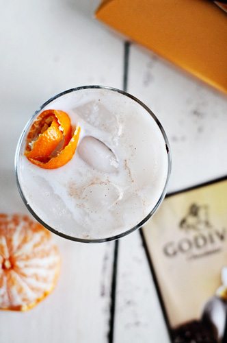 Mmmmm. I’ve had chocolate infused vodka before and I always thought it tasted odd. BUT Godiva infused vodka. THAT sounds fantastic. The cocktail sounds wonderful for Valentine’s Day AND I love the orange peel! Wonderful!
