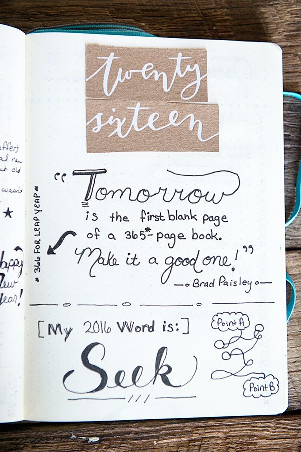 And finally, the start of 2016 page…with a quote I loved and my 2016 word of the year.