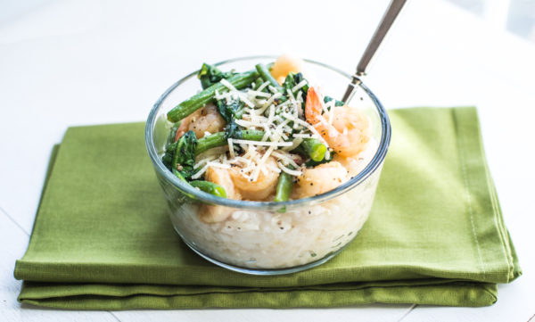 This recipe was inspired by one I recently saw in Taste of Home Magazine. Taste of Home is always one of my go-to favorite sources for family-friendly recipes. They hit it out of the park with this one. I didn’t adjust the risotto much but changed up the shrimp and veggie part based on the veggies and ingredients I typically have on hand. This version has been on repeat in our house and it’s just about perfect!
