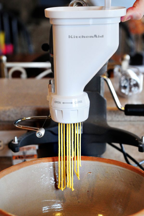 When I gave a KitchenAid pasta press attachment away earlier this year, many of you were like me… you really wanted this attachment, but just hadn’t bought one yet. When it came to want versus need, you put this in the “want” category and went on to buy more practical things. I think it’s time to put the KitchenAid pasta press / extruder attachment onto your “need” list because once you start making fresh, homemade pasta using this attachment, you’ll never want to buy store bought pasta again.