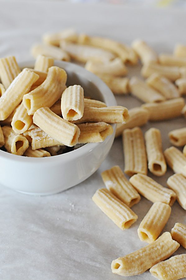 Can’t believe you made rigatoni at home! For some reason it never occurred to me that you could make fancier shapes, I thought it would be limited to spaghetti or linguine. I’m going to have to look into getting an attachment for my Kitchenaid.