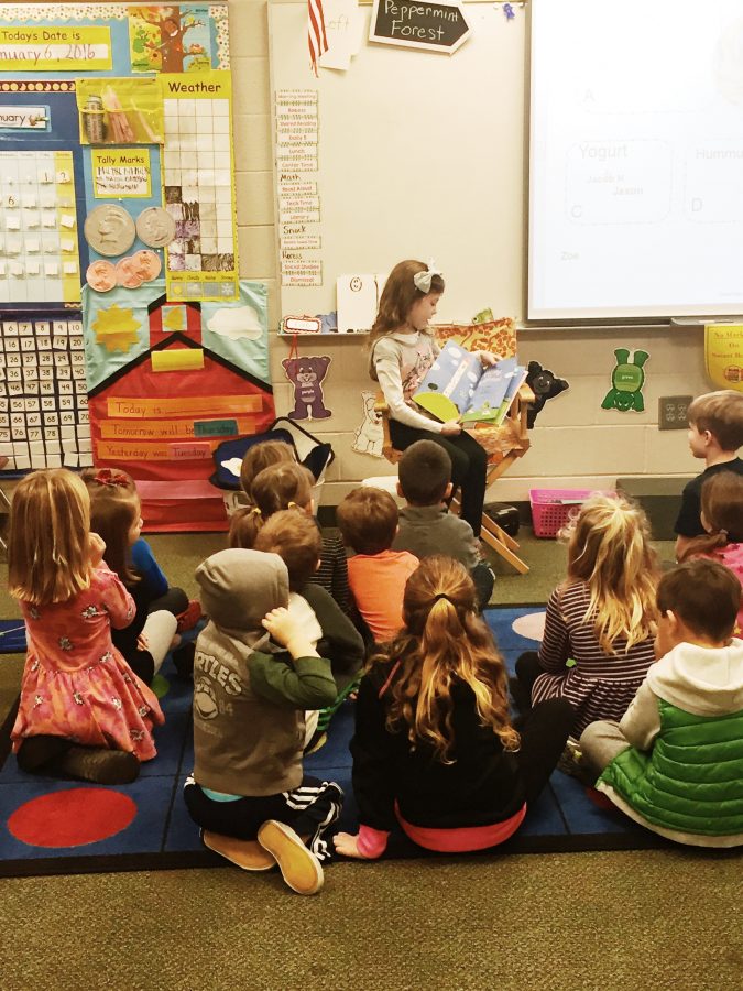 Leah’s best friend is a 1st grader and she read to Leah’s classroom this week on the day I was volunteering.