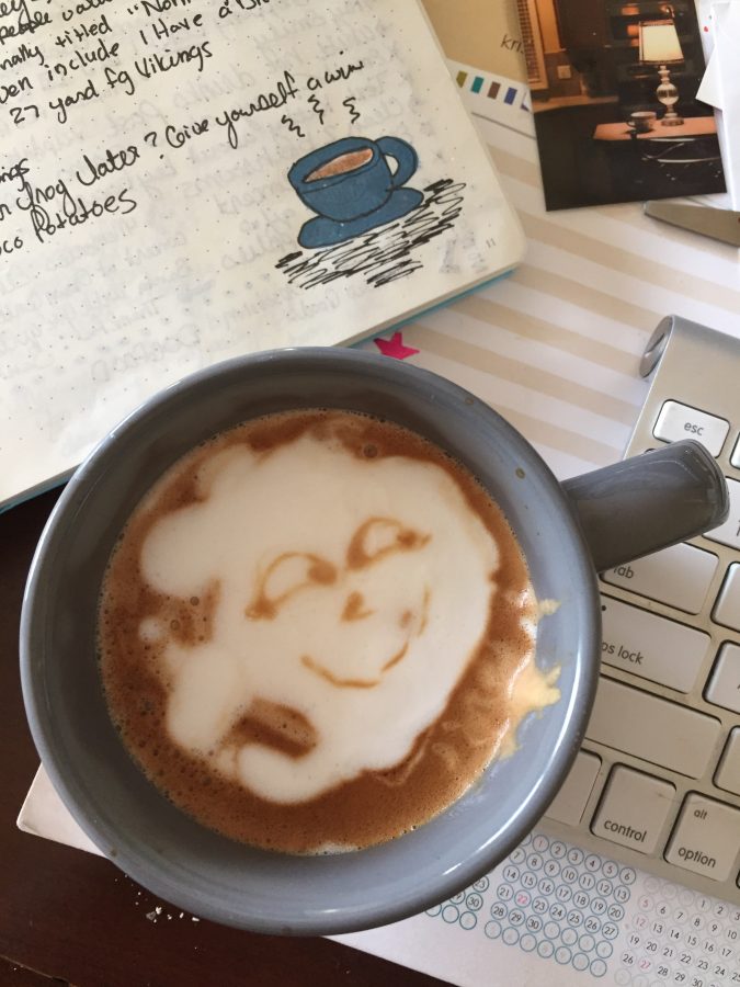 My 12 year old made me a latte. Look how cute her latte art was!