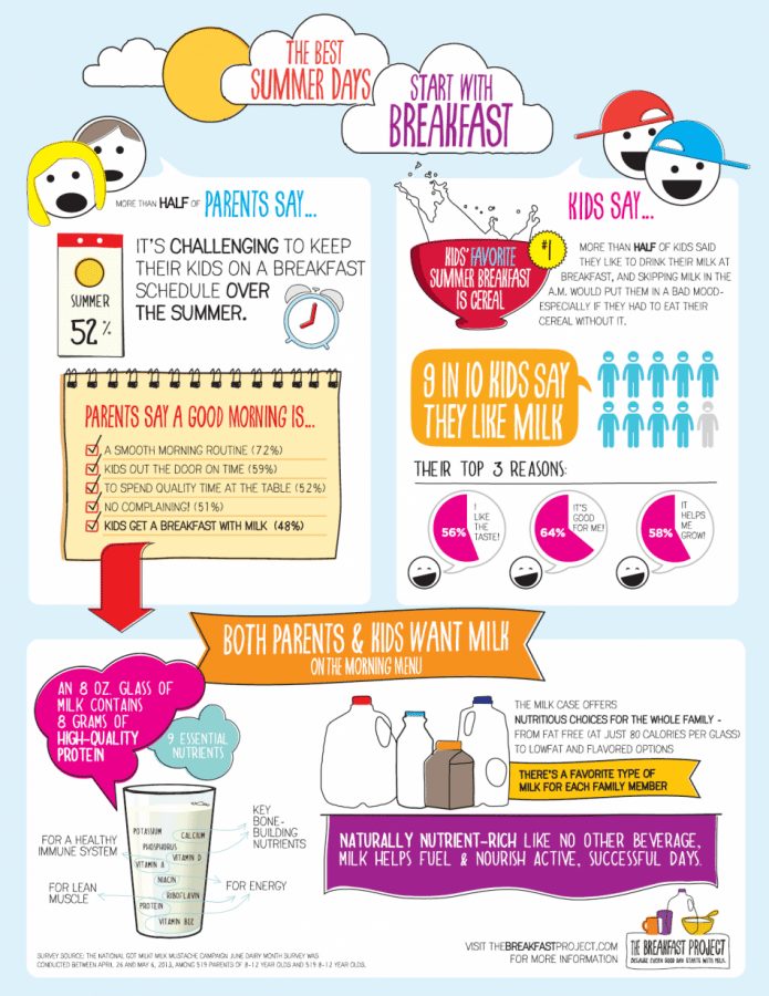 In partnering with the Got Milk campaign and their The Breakfast Project, I’ve discovered that I’m not alone! 52% of you find that it’s a challenge to keep your kids on a breakfast schedule over the summer. There’s some solidarity in those numbers, friends… I don’t feel like quite the slacker mom knowing that I’m not the only one having an issue with keeping my kids on a well fed schedule over the summer.