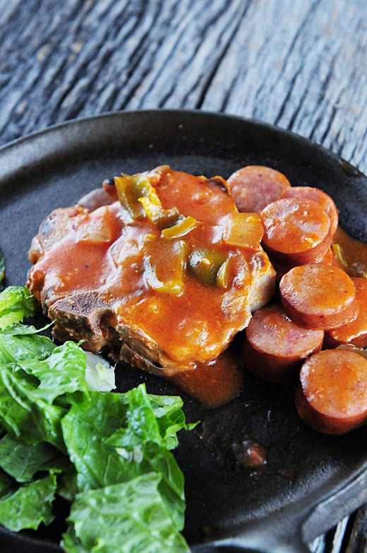 And I love the Cajun swing on the pork chops and sausage. Looks delicious! 🙂