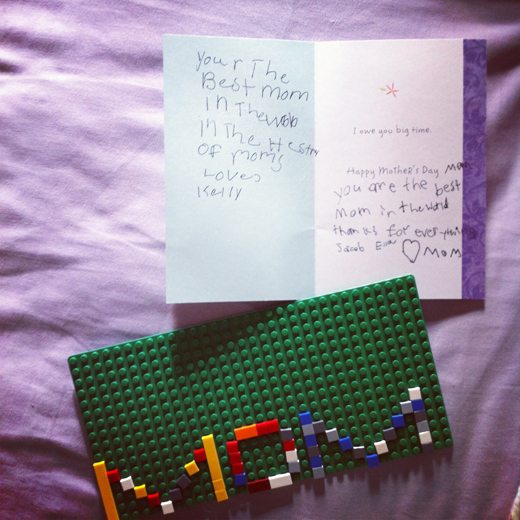 May 13th: My mother’s day card from my kids, and a Lego creation from Jacob. It’s hard to beat being the best mom in the “Hestry of Moms”.