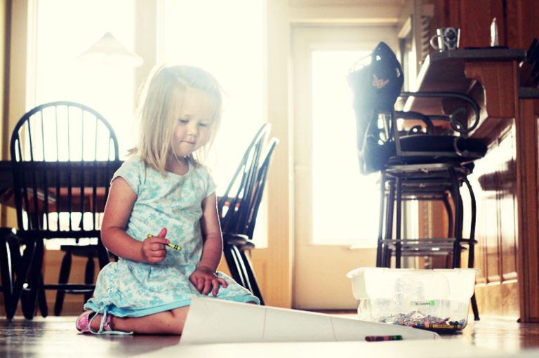 Wednesday, April 4: Huge roll of butcher paper, a large tub of crayons and one happy and busy 2 year old!