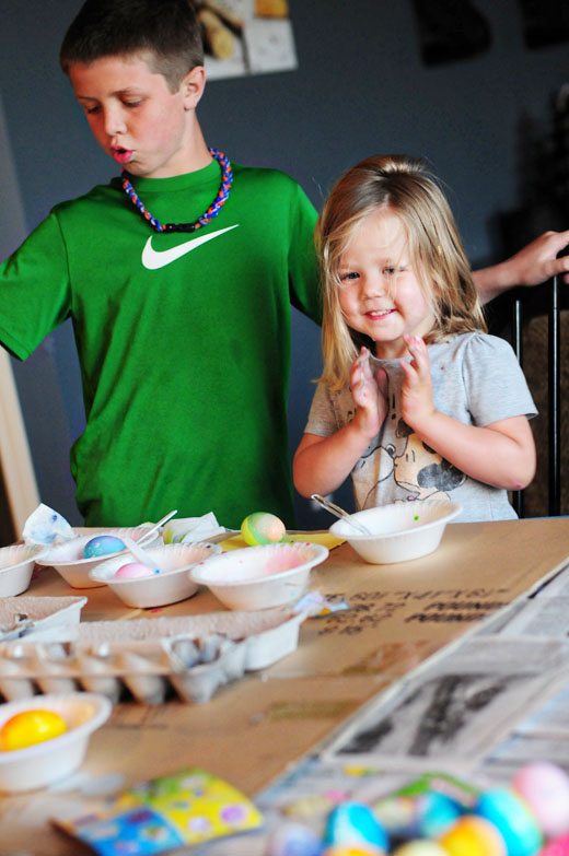 Friday, April 6th: Time to dye the Easter eggs! Jacob wasn’t there for most of the time and Kelly was at a friends for a sleep over, but the younger two girls and I certainly got into the action on our own and had a great time!