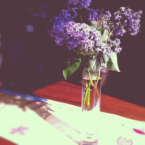 Monday, April 9th: Taken with my iPhone, some pretty lilacs from our lilac bush!