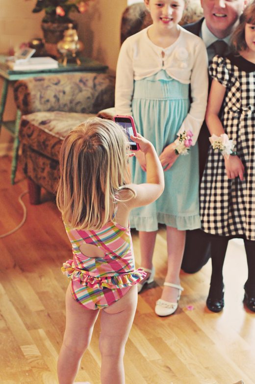 Saturday, April 14: The Daddy Daughter Dance was tonight at school. It’s such a special night for the girls and Nick, but poor Leah is not old enough to go. She did pretty well with the fact last night, but did insist on taking some cell phone pics to commemorate the evening (in her swimsuit, of all things).