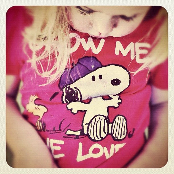 February 21st, 2012: We don’t do a lot of character shirts around here, but Leah has two adorable Snoopy tee’s that we inherited from some good friends. I wish she would never, ever grow out of this sweet shirt!
