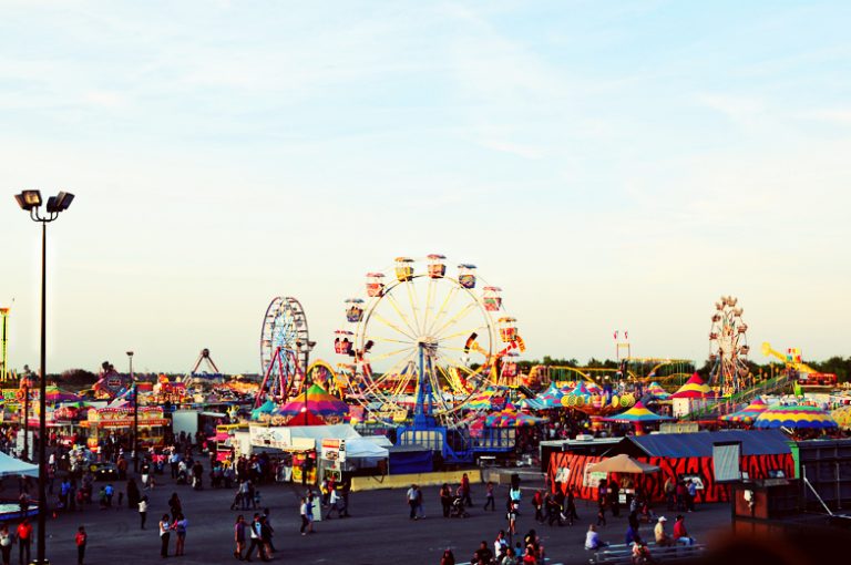 March 14, 2012: Tonight we went to the fair and rodeo in Mercedes, TX. We spent the evening watching extreme bull riding, which was a fun Texas experience. I snuck up to the top of the arena and took this picture of the fairgrounds.