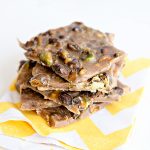This Toasted Pistachio Toffee Brittle is one of those things where you’ll politely say you just want one small piece, then when no one is looking, you’ll go back into the kitchen and eat an entire half of pan worth of it…or so I’ve heard, ahem. It’s sweet, salty, crunchy and delicious all in one. I hope you enjoy it!