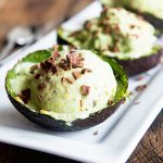 Making homemade avocado ice cream isn’t too hard, but I wanted an easy way to get the flavor profile of avocado ice cream without having to drag out my ice cream maker. The result is what I’m calling “Shortcut Avocado Chocolate Chip Ice Cream”. You see, with this method of making ice cream, you simply doctor up a carton of high quality vanilla ice cream with some California Avocados and chocolate chunks. This is the real deal, without a whole lot of extra effort! As a bonus fun way to serve this treat, I scooped the prepared ice cream into the avocado shells…easy and zero dishes to wash. That’s my kind of dessert!
