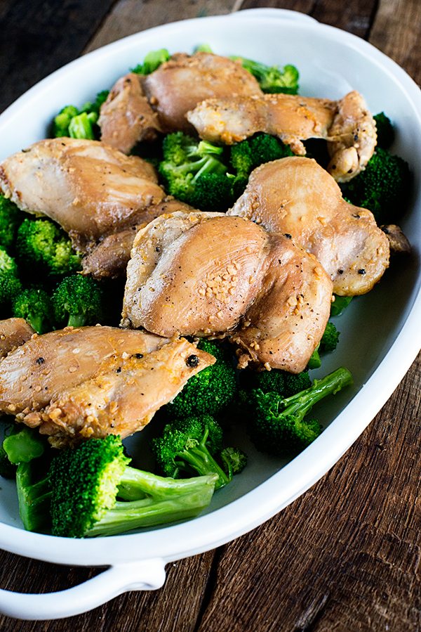Soy Honey Chicken Thighs Recipe with Lemon Broccoli