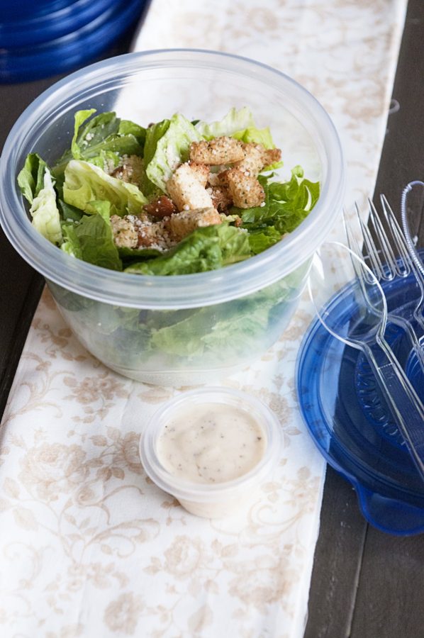 - We like salads, but not when they are soggy from dressing. Put the dressing in a separate container so we can pour it on at lunchtime. (These Glad To Go Lunch Containers are great for storing your salad and dressing, but keeping them separate! The dressing bowl simply snaps into the lid!)