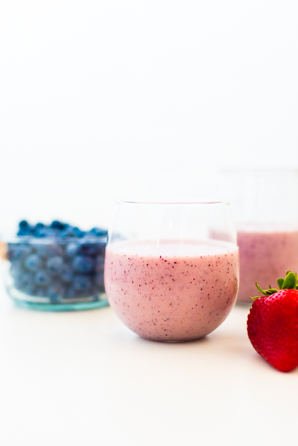 It’s that time of year where the kids are wanting to eat ALL THE THINGS. Home for the summer, they have expectations to be fed breakfast, lunch and dinner. Often times I can get away with telling them to grab a bowl of cereal or something, but every once in a while that mom guilt kicks in and I feel like I should put in a bit more effort into their breakfasts. Enter this breakfast saving, easy Strawberry Blueberry Smoothie recipe.