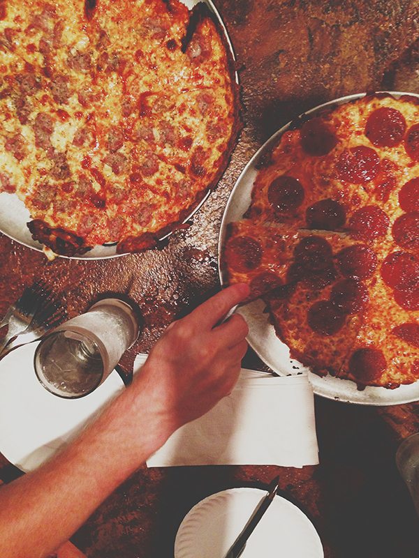 - Fricano’s Pizza This was another recommendation from my friend, Sheila over at Eat2Gather. She said “Either you’ll love Fricano’s or you’ll hate it.” Fricano’s carries what I would consider extra thin crust pizza, and we LOVED it. If you are looking for a place where “everybody knows your name” Faicano’s is it. Every person that walked through the door seemed to be best friends with the others. It’s definitely a local hangout – but even visitors are welcome!