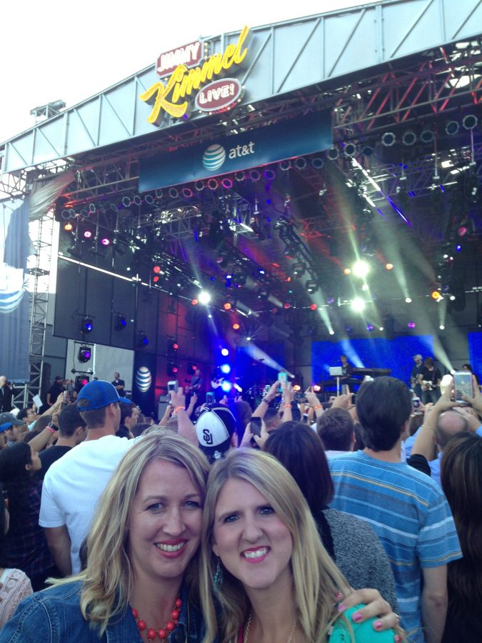 Harrison is pretty much the coolest guy ever (not to mention the nicest) so when he worked with another good friend to get us front row seats to Jimmy Kimmel Live the next day, we were wowed. Just like the set of The Voice, Jimmy Kimmel’s stage seems so small compared to what we see on TV. When Jimmy was doing his act, he was just a few feet in front of us. It was so much fun! Naturally we were completely and totally blown away when Jimmy decided to do his very first show selfie that night and came right over to our row to do it! You can watch the video of it here… as if I wasn’t insecure enough, let’s just take a selfie on TV and put it on national television!