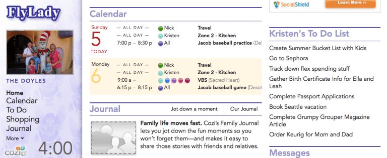 Are you all familiar with Cozi – the FREE online family organizational site? If you aren’t and you have a family with a busy schedule, listen up… you NEED Cozi. Cozi is a gorgeous calendar, to-do list, journaling application that can be accessed through your computer along with through apps on your phone or iPad. Since we’ve been using Cozi, it has been life changing for keeping our family in the loop. In even greater news, Cozi has partnered with FlyLady so you can import the daily routines into your Cozi calendar. Two of the best free organizational resources on the internet combined into one…you’ve got to love that! (And I’m not being paid for my opinion… I seriously love what this has done for our family). Finding something that finally works to keep our family schedule organized makes me VERY happy!