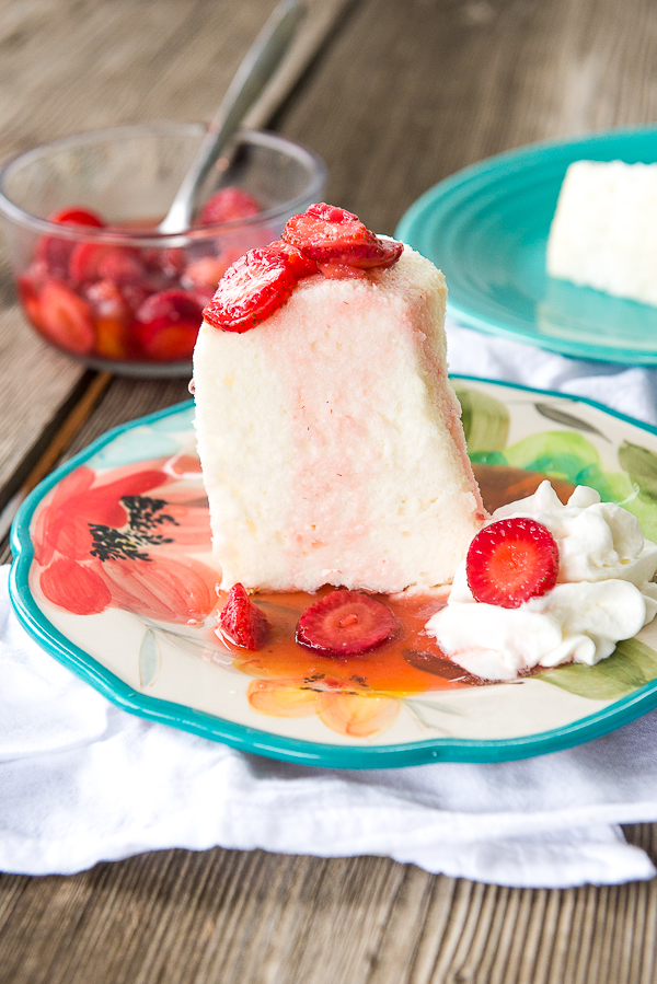 While I was away visiting my parents, my mom made the most amazing Angel Food Cake. Mom has made this cake for birthdays for years, but I never paid that much attention to how she made it.
