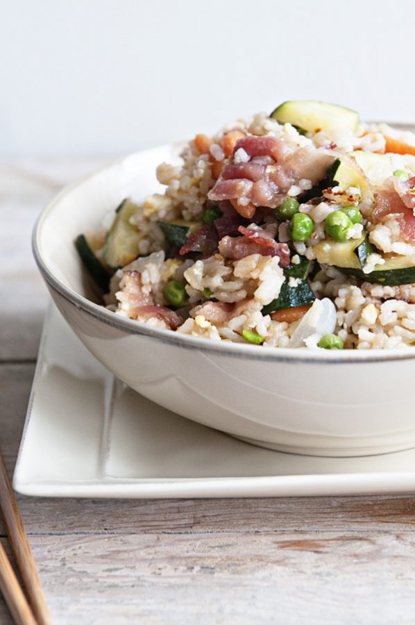 It’s so hard to believe that the first day of school is almost here. Where did the summer go?! And we are not even close to getting back on a decent schedule. This fried rice (with bacon!) is something that my family would happily gobble up.