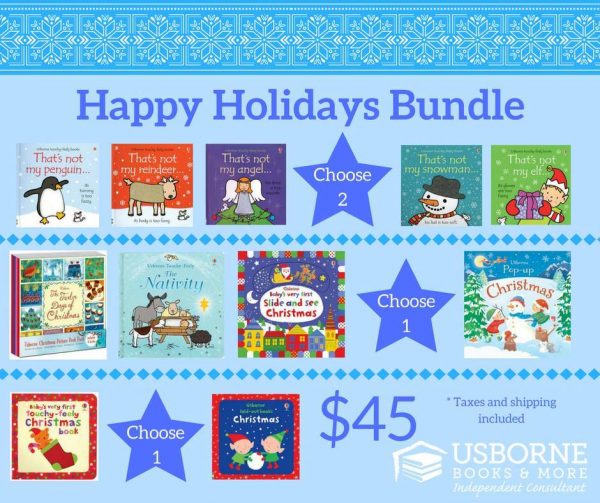 Now that you know why we love Usborne Books, are you ready to hear about the giveaway? Julie is offering the choice of one of the Holiday Book Bundles to a lucky Dine & Dish reader.